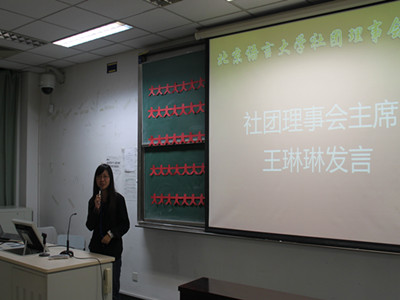 整个大会在轻松热闹的氛围下顺利进行。前任主席佟芸辉的精彩演讲为大会拉开帷幕。佟芸辉就上大学的原因、社团理事会的组织性质等问题发表了独到的见解,并对新一届社团理事会给予厚望,鼓励全体社理人能够坚定信念,定准目标,自信努力的完成日后社团工作,使社团理事会能向“成为北京乃至全国最好的社团平台”这个宏伟目标迈进更大的一步。本届主席王琳琳表示:希望所有助理能够做到谨言慎行,多想多做,高调做事,低调做人,从日常工作中多交流、学习。