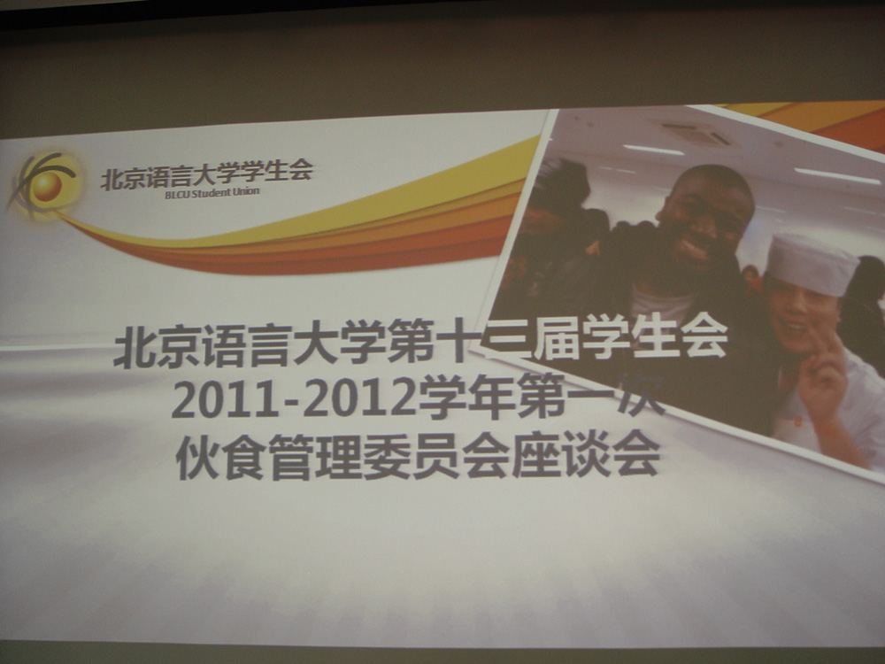 10月14日下午2点,北京语言大学伙食管理委员会2011-2012学年第一次座谈会在办公楼第三会议室举行。校团委书记舒三红、后勤服务集团书记黄益方、饮食服务中心主任姚凤才、食堂各层经理等领导老师以及校学生会主席毛绿萱出席了会议,与各院系学生代表进行了座谈。