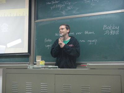 图二:为美国学生Bobby与大家交流