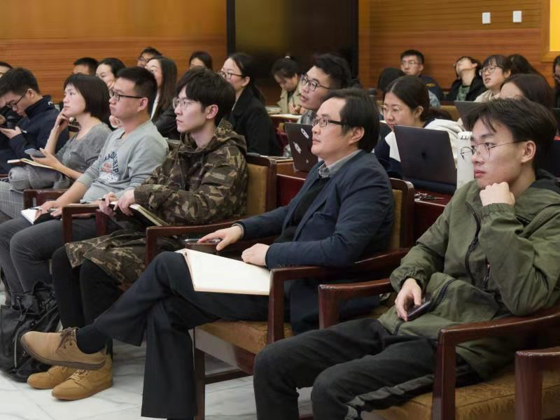 中国书法国际传播研究院执行院长朱天曙教授主持讲座,高度赞扬了王小盾教授新颖独特的研究思路与方法,并就书写工具和书写材料对中国书法史的影响这一问题与王教授进行探讨,认为文房工具是字体演变、书风形成的重要因素之一,同时强调书法学科的研究需要综合文献学、文字学、考古学、民俗学等多种学科才能更加具体深入。北京语言大学教师、清华大学师生也针对本次讲座内容向王小盾教授请教,现场学术氛围浓厚,讨论热烈。