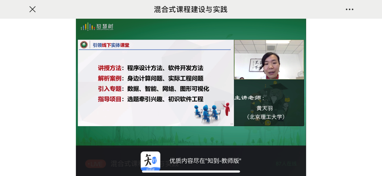4月13日下午,教务处举办了第5期“名师工作坊”。本次工作坊采用线上线下结合的方式,特邀北京理工大学黄天羽副教授,主题为“混合式课程建设与实践”。全校共有十余位教师现场参会,百余位骨干教师在线上参与了此次工作坊。