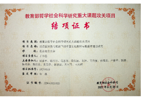 经教育部社科司审核,由我校于小植教授任首席专家的教育部哲学社会科学重大攻关项目“汉语国际教育视野下的中国文化教材与数据库建设研究”于近日顺利结项。该项目于2018年立项,项目组由来自北京大学、吉林大学、中山大学、闽南师范大学、河北大学等国内诸多高校和科研机构的知名专家组成。