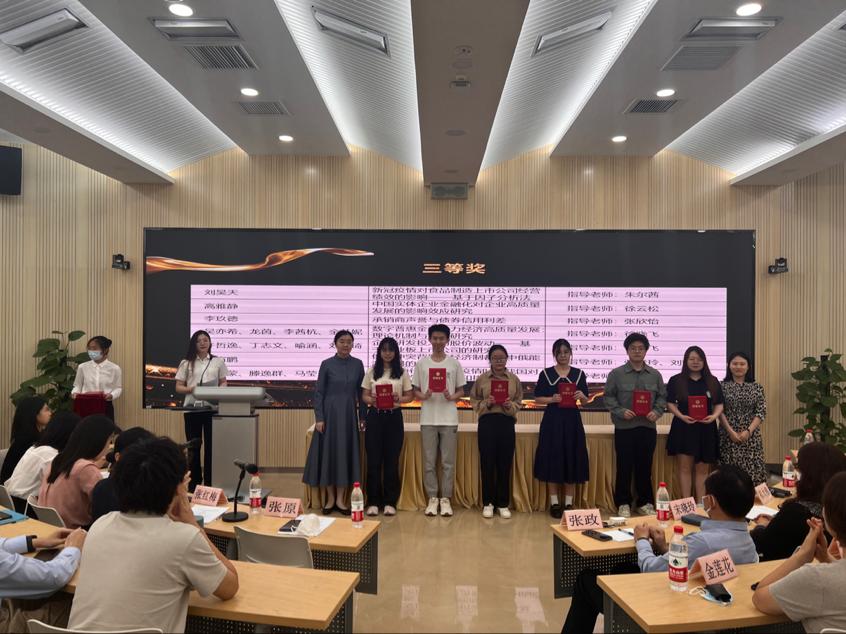 论坛的第三个环节是公布获奖名单并颁奖。评审委员会秉持着公平、公正、公开的原则进行匿名评审,最终评出24组论文、42名学生获奖。荣获一等奖的学生为王婉濛、秦璇、曲越、余荣伟;荣获二等奖的学生为郭思延、黄珊、朱忠原、段佳辰、张雪妮、孙文扬、常劲、薛丽宇、殷嘉莲、荀雨菲;荣获三等奖的学生为刘昊天、高雅静、李玖德、吴亦希、龙茵、李茜杭、金苏妮、徐哲逸、丁志文、喻涵、刘贻琦、凌宵鹏、王艺蒙、滕逸群、马莹、柳彩新;荣获优秀奖的学生为谢存欣、赵洪卿、李浩铭、邵志皖、安家瑶、吕林遥、徐智健、李骞、王勤、钟润发、王贝琪、罗文慧。荣获优秀指导教师为宋晓玲、徐云松、徐晓飞、金莲花、金莹、石峰。