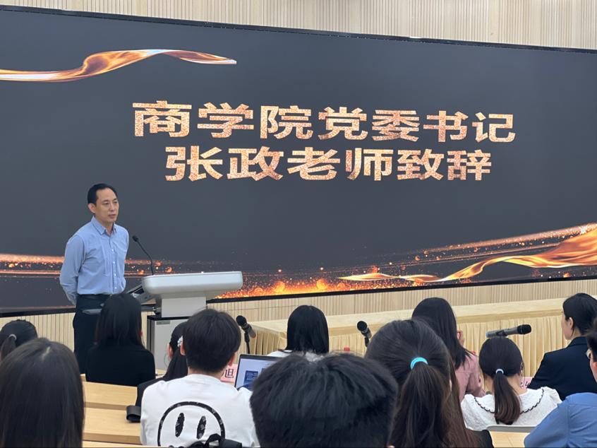 论坛伊始,商学院党委书记张政老师首先对参会人员表示欢迎,表达了对本次参与论坛的教师和学生的肯定与期待。在预祝论坛顺利举办的同时,张政老师希望我院师生能关注热点话题和学术前沿动态并积极投身学术研究活动,把握学术交流机会,注重实践成长。