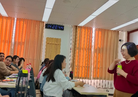 “师者”传道授业解惑,苏英霞教授不仅将自己多年积累下来的宝贵语法教学经验倾囊相授,同时也为同学们传授了为人师者的宝贵经验。苏老师寄语同学们,“充分的备课是成功教学的保障”;作为一名教师,教学“方法能速成,但知识是日积月累”的,鼓励同学们珍惜宝贵年华,从现在开始注重知识的日积月累,为日后走上国际中文教育相关岗位打下坚实的基础。