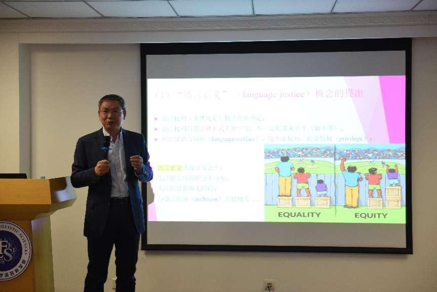 方小兵教授从“国际语言政策研究现状”“语言政策研究创新”“政策研究方法和视角”“政策研究论文写作”四个方面详细介绍了国际语言政策研究的前沿问题、创新路径和论文发表相关因素。通过对当前国际上语言政策的主流观点、学术流派、研究话题进行详细介绍和分析,透视了语言政策研究学科的发展路径和前景,对我国语言政策和规划的研究进行了梳理,给在场师生上了一堂生动形象的“语言政策与规划精华课”,并对师生的本方向论文写作进行了指导。同时,方教授分享了自己及《中国语言战略》编辑部成员在审稿过程中的经验与心得,倡导大家瞄准国家、社会真问题,脚踏实地做学问。方教授指出,文明取向的语言规划是值得注意的学术前沿,技术规划、话语规划等是新语言规划研究的应有之义。方教授还特别强调了“语言建构文明、语言传承文明,语言传播文明”的辩证关系。