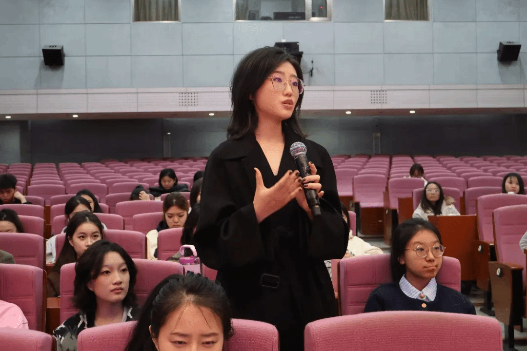 在互动环节,针对同学们提出的“如何面对镜头和名人而不紧张”的问题,季小军校友坦言“紧张是正常的,关键在于充分准备”。他分享心得道,当准备足够充分时,自信便会自然取代大部分紧张感,并建议大家将关注点从“自我表现”转移到“有效沟通”的本源上来。对于广受关注的“内卷”现象,季小军则给出了独到见解,他认为“卷”的本质是同质化竞争,而破局的关键在于发掘并提升自己的“言值”,即找到并塑造个人独特的声音与价值。