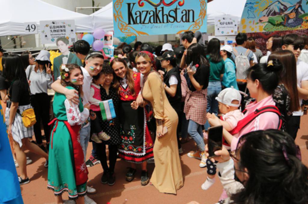 各国留学生们在台上尽情演绎的同时,各国展棚也创意无限,精彩纷呈。亚洲展区前,塔吉克斯坦留学生跳起了轻快灵巧的传统舞蹈。泰国留学生身着民族服饰,向中外观众介绍本国文化的特色。一进入欧洲展区,浪漫的气息便扑面而来,意大利小伙子用自制的相框与观众合影,丹麦姑娘们以有奖问答的形式向大家介绍丹麦。在美洲和大洋洲,巴西小伙子穿上了球衣,手捧冠军奖杯频频与观众合影。加拿大、美国留学生为观众们准备了地道的本国美食。非洲展区带来的是自由、放松之感,同时也不乏给人美的享受。