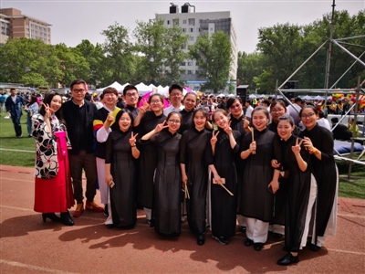王大龙说:“我特别喜欢文化节,所有人在舞台上穿着民族服饰、手持本国国旗,非常壮观。”由于汉语水平进步非常大,他还担任了活动的主持人。“我想营造一个轻松开心的氛围,把快乐传播出去。所以我得让自己先放松,尽可能讲些小笑话逗大家乐。”他说。