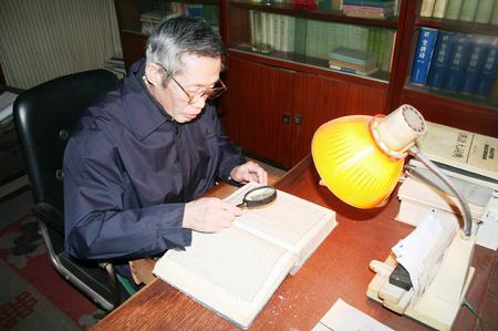 夜已深,周围万籁俱寂。北语家属楼的一个普通书房内,一位老人依然坐在书桌前忙碌着。此时墙上的石英钟指针已指向凌晨一点,但老人似乎浑然不觉。台灯下,老人左手按着书,右手端着放大镜,一字一句地认真研读着眼前的古籍。偶尔疲累的时候,老人会点上一支香烟,吸上几口,抬起头,凝神思索一番,然后再继续伏案工作……这位老人就是我国著名的唐诗研究专家、北语退休老教授彭庆生先生。