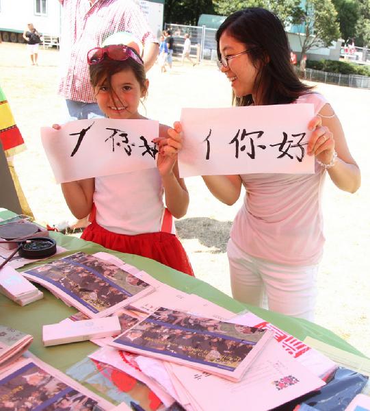 在麦大孔院加方院长盛余韵教授的带领下,作为社区成员,麦大孔院全体教职员工积极参加了此次活动。经过精心筹备和安排,孔院带去了富有中国传统特色的手工艺品,如剪纸、十二生肖动物等。孔院还展出了文房四宝——笔墨纸砚,现场为参观者表演书法。孔院展出的中国民族服装华美艳丽,吸引着参加庆祝的人们驻足观看。同时,孔院还准备了富有中国特色的游戏节目,现场发放精美的中国书签和孔院介绍材料,目的在于宣传中国文化,提升当地人对中国文化和语言的兴趣。