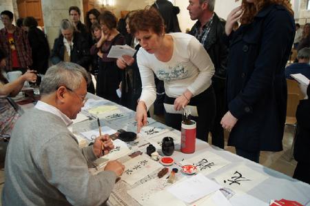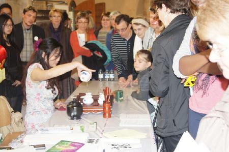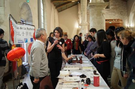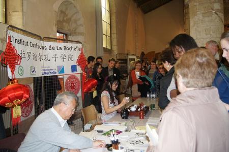 拉罗谢尔市慈善组织和红十字鲜血中心邀请拉罗谢尔孔子学院在3月23日举办的拉罗谢尔市慈善活动日上专设了一个展台,向广大市民宣传孔子学院,进行现场中国茶道艺术表演、书法表演和中国剪纸艺术互动等活动。