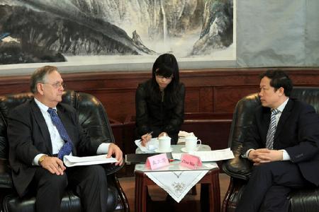 3月26日上午,我校党委副书记赵旻在逸夫楼集贤厅会见了美国西密歇根大学国际学院院长兼孔子学院外方院长唐纳德·麦克劳教授,就基于孔子学院平台上的两校合作发展进行友好洽谈。