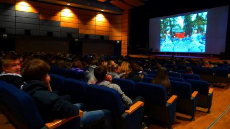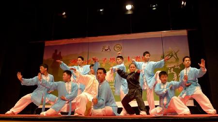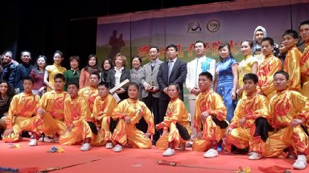 少林寺的暮鼓晨钟拉开了演出的序幕,围绕着“欢乐、和谐、共享”三大主题,演出被分为“欢乐迎春”,“和谐新春”和“天地同春”三个篇章。河南嵩山少林武术职业学院的师生为我们带来了精彩绝伦震撼人心的武术表演,“少林十八般武艺”的功夫及兵器展示让大家叹为观止,更让人惊喜的是很多意大利的高中生熟知这些刀、剑、三节棍等等兵器的名字。可针穿玻璃、头开钢板的少林硬气功不由得让孩子们为表演者捏一把汗,身怀绝技的师生们轻而易举的就完成了这些看似“不可能完成的任务”,叫好声中掀起了演出的小高潮。《功夫动物》则为观众们展示了各种以动物动作为素材的少林功夫,如“猴拳”、“虎拳”和“蛤蟆功”等等,表演结束后主持人邀请观众上台学习这些动作,大家的热情瞬间被点燃了。这些学习中文的孩子们不仅知道“老虎”“老鹰”和“鸭子”还可以说出“青蛙”、“蛇”甚至“蝎子”等动物的中文名称。好学的意大利学生中文说得有模有样,学起少林功夫来也一丝不苟,有的学生甚至当场拜起“师父”来。除了精彩纷呈让人目不暇接的少林功夫,表演者还为我们带来了享誉世界的太极拳表演,以黑白为主色调突出着阴阳调和的主旨。
