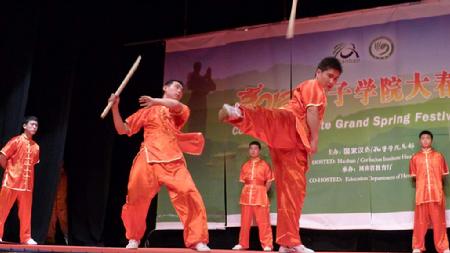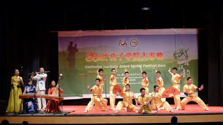 2012年2月6日,值中国元宵佳节之际,由国家汉办主办、河南教育厅承办的“武林汉韵”孔子学院大春晚拉开了帷幕。首场演出安排在布雷西亚市,由米兰天主教圣心大学孔子学院和伦巴第大区教育厅合作承接、组织。嵩山少林武术职业学院、河南大学和河南师范大学的师生不远万里,不辞辛劳来到意大利,为我们带来了一场别开生面、融合了武术与民乐的精彩演出。此次演出在布雷西亚的Santa Giulia剧场举行,来自伦巴第大区多所开设汉语课中学的高中生在教师的带领下不畏严寒前来观看演出,可容纳400多人的剧场座无虚席,气氛热烈。