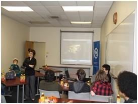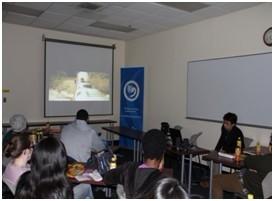 电影播放之前,孔子学院中方院长孙实教授衷心欢迎大家前来参加“中国电影之夜”的观影活动,并亲切地为大家讲解电影的背景知识,以便于学生们更好地理解电影情节。