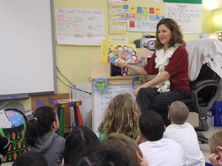 照片6:美国老师在给学生们讲《我的第一个春节》