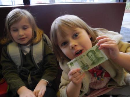 放学前,老师们把学校为每位学生准备的红包放进了他们的文件夹,春节的这个习俗让美国孩子们对中国孩子羡慕不已,虽然里面只有一元人民币,但是第一次接触到中国钱币的孩子们仍然很兴奋。