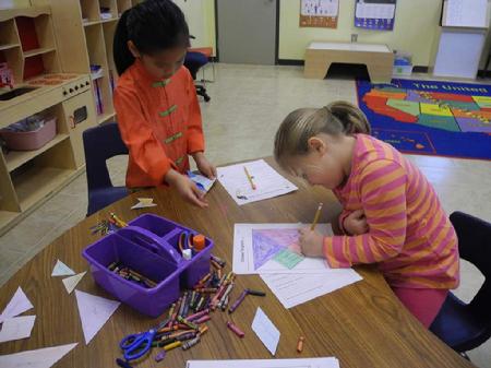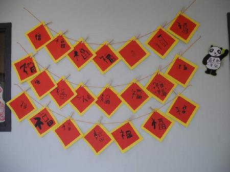 美国老师也为帮助学生了解中国文化准备了很多内容:英语课老师给学生们读了故事书《我的第一个春节》,介绍了有关春节的种种习俗;科学课老师准备材料,教学生们做了炮竹模型,并写上了“新年快乐”和“鞭炮”的字样;还有的老师买来了满是小塑料泡的布铺在地上让孩子们踩,让他们感受放鞭炮的热闹气氛。