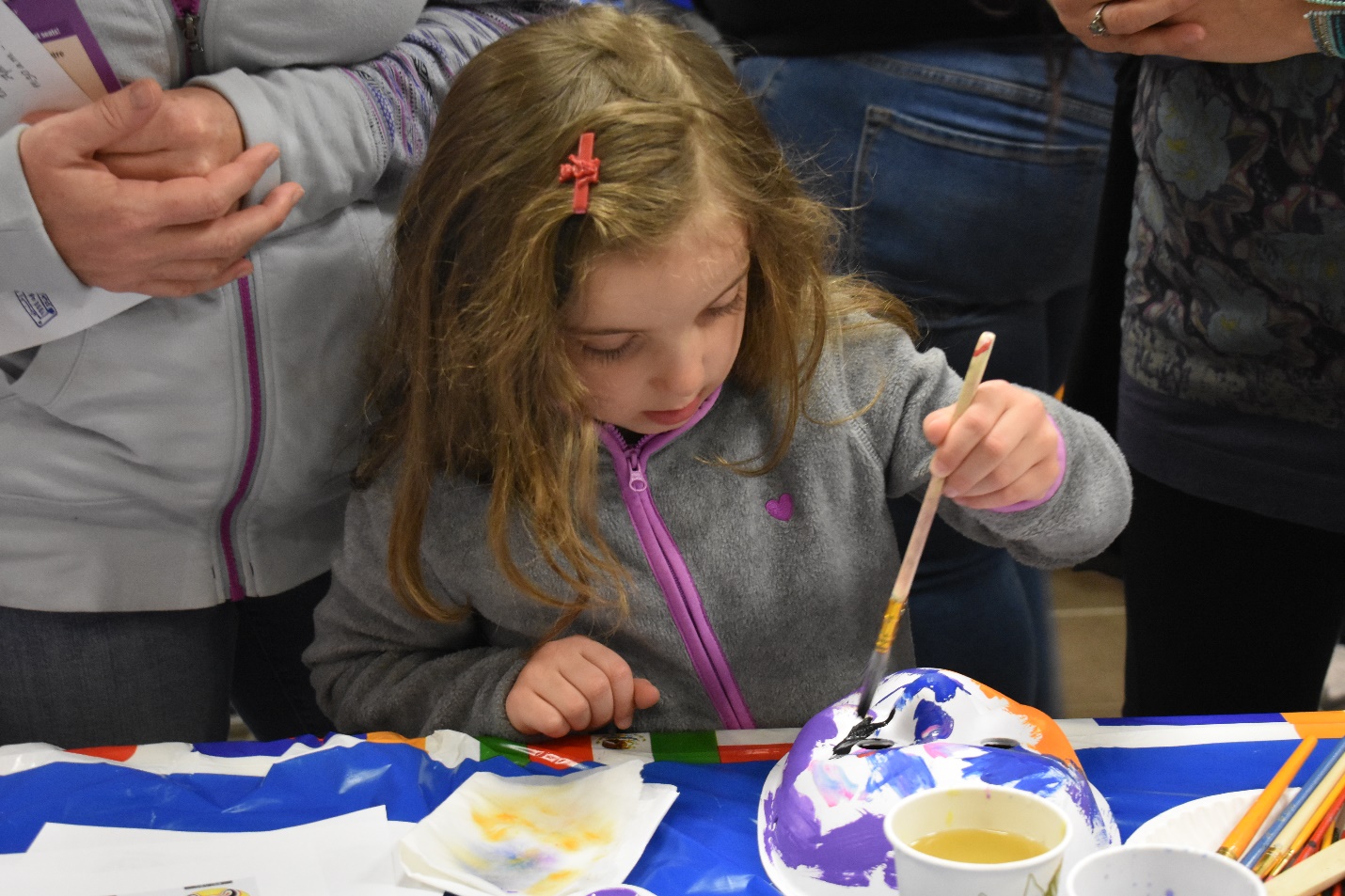 孔院准备了京剧脸谱的宣传册,学生们看得津津有味,提出了许多关于中国京剧的问题。了解了京剧脸谱的文化意义之后,现场师生又利用五彩缤纷的颜料兴致勃勃地创作起脸谱来。有的喜欢传统的京剧脸谱,有的则自由发挥,绘制具有个人特色的面具。活动还吸引了许多小朋友停留驻足,他们对这一中国传统文化充满好奇,并发挥自己的想象力,大胆地尝试创作起来。