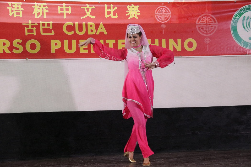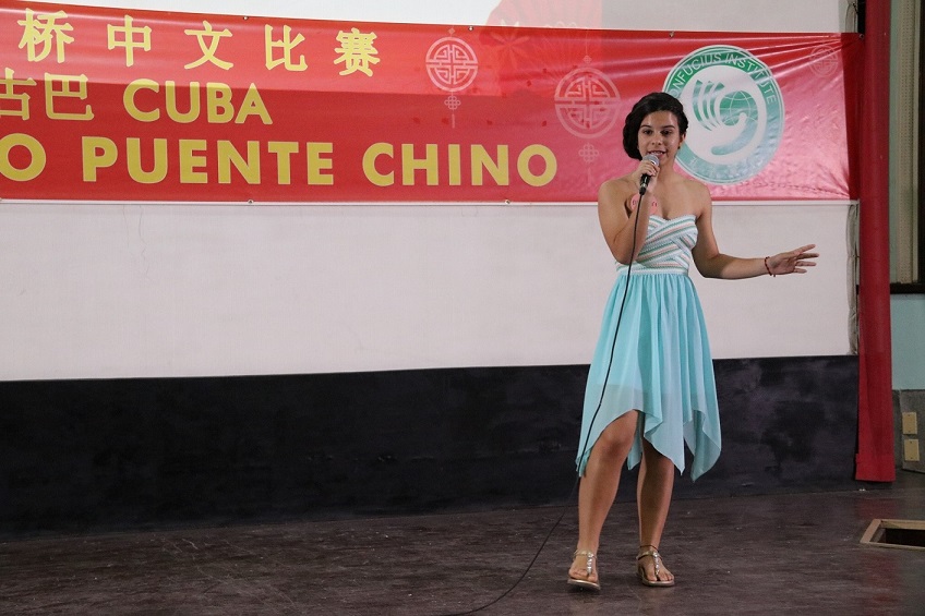 比赛间隙,哈瓦那大学孔子学院合唱团的学生为观众演唱了汉语桥主题曲。中学生汉语桥比赛也精彩不断,伊丽莎白·桑布拉诺(Elizabeth Zamorano Arias)获得了冠军。