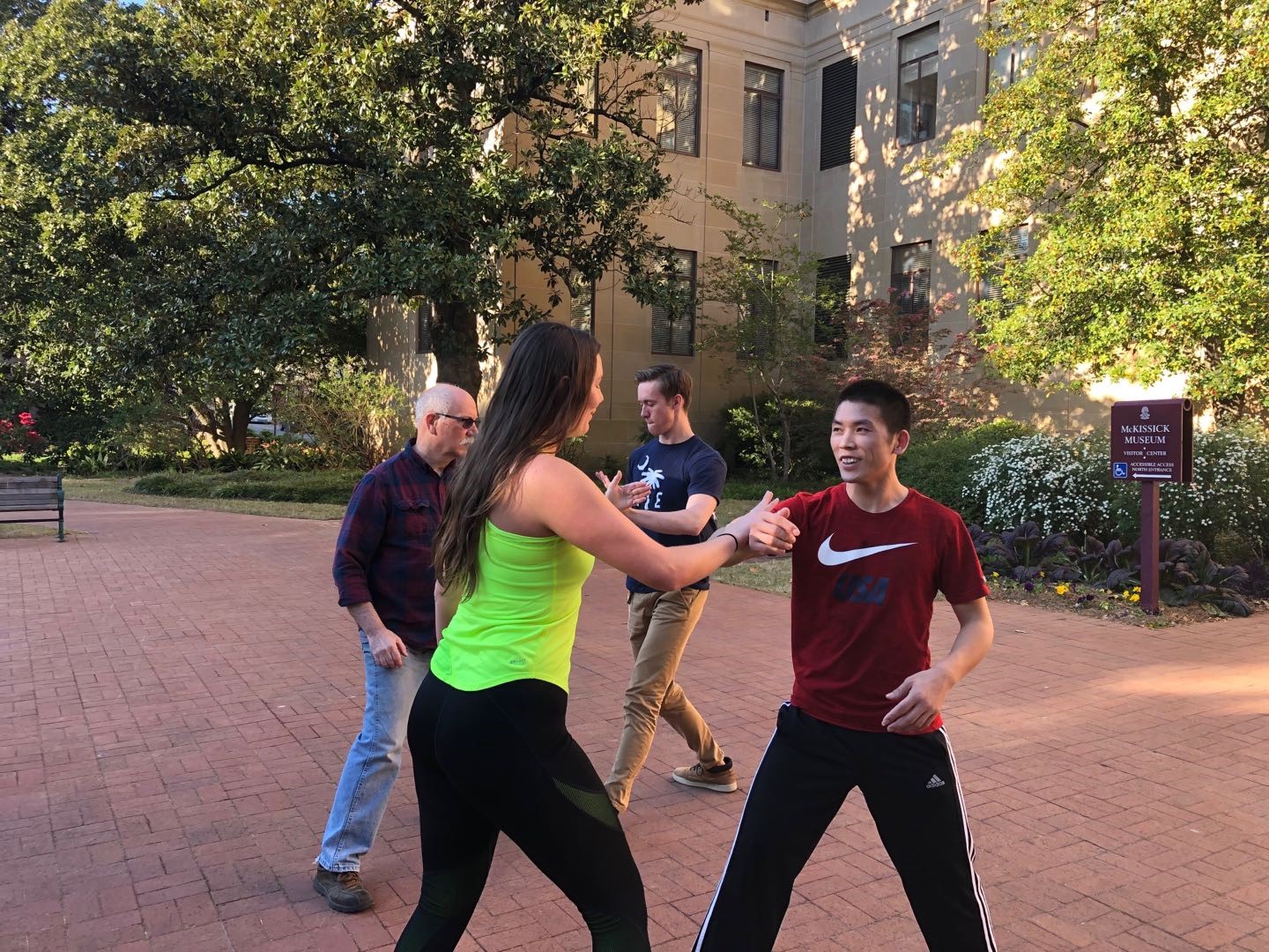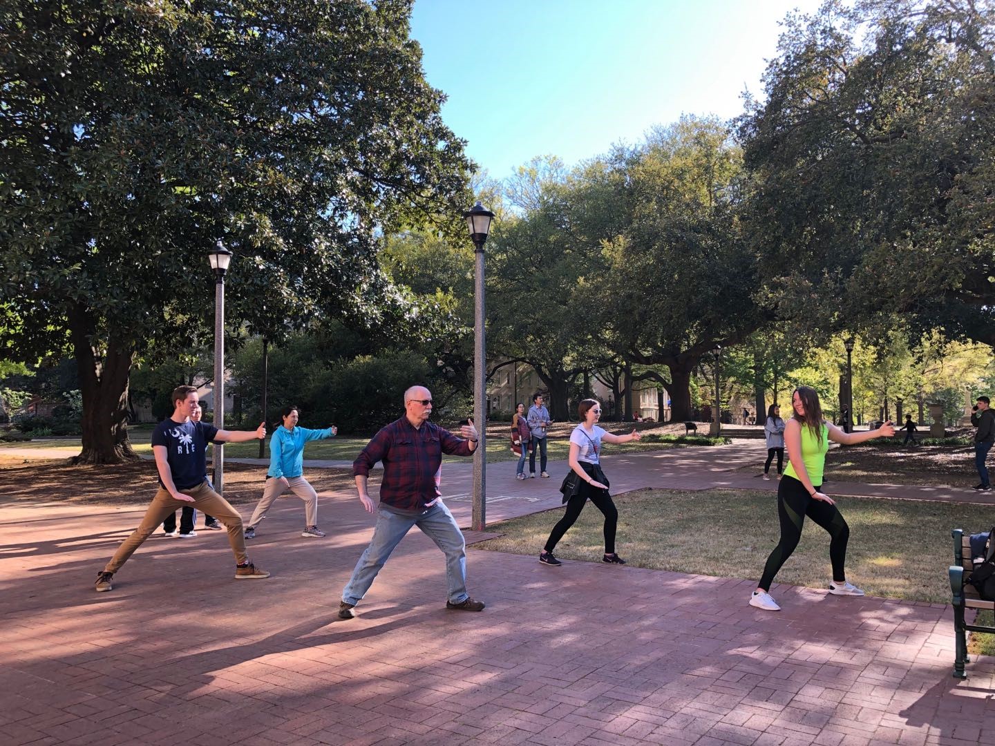 当地时间4月15日,由南卡大学孔子学院组织开设的、为期五周的春季太极拳公开课顺利结课,受到各方面一致好评。该课程于3月4日开课,每周在McKissick博物馆前进行两次,吸引了二十多人次参加。这些学员中既有在校大学生,也有当地居民,还有一些练过太极的老学员。