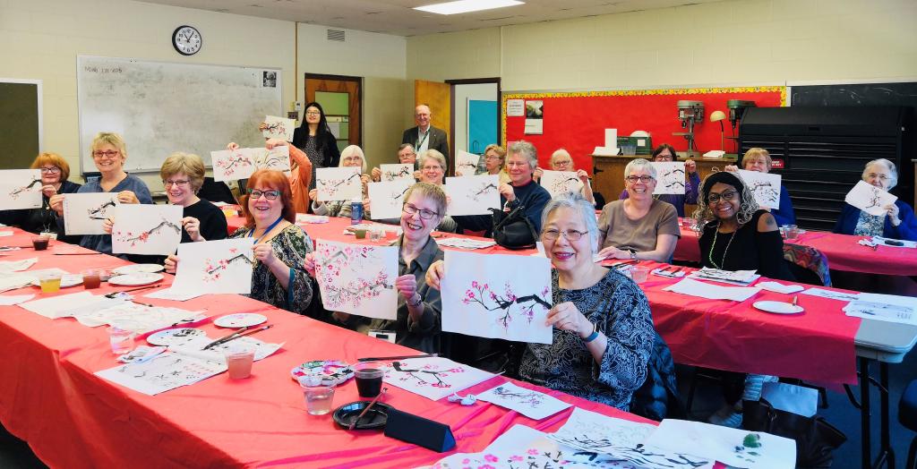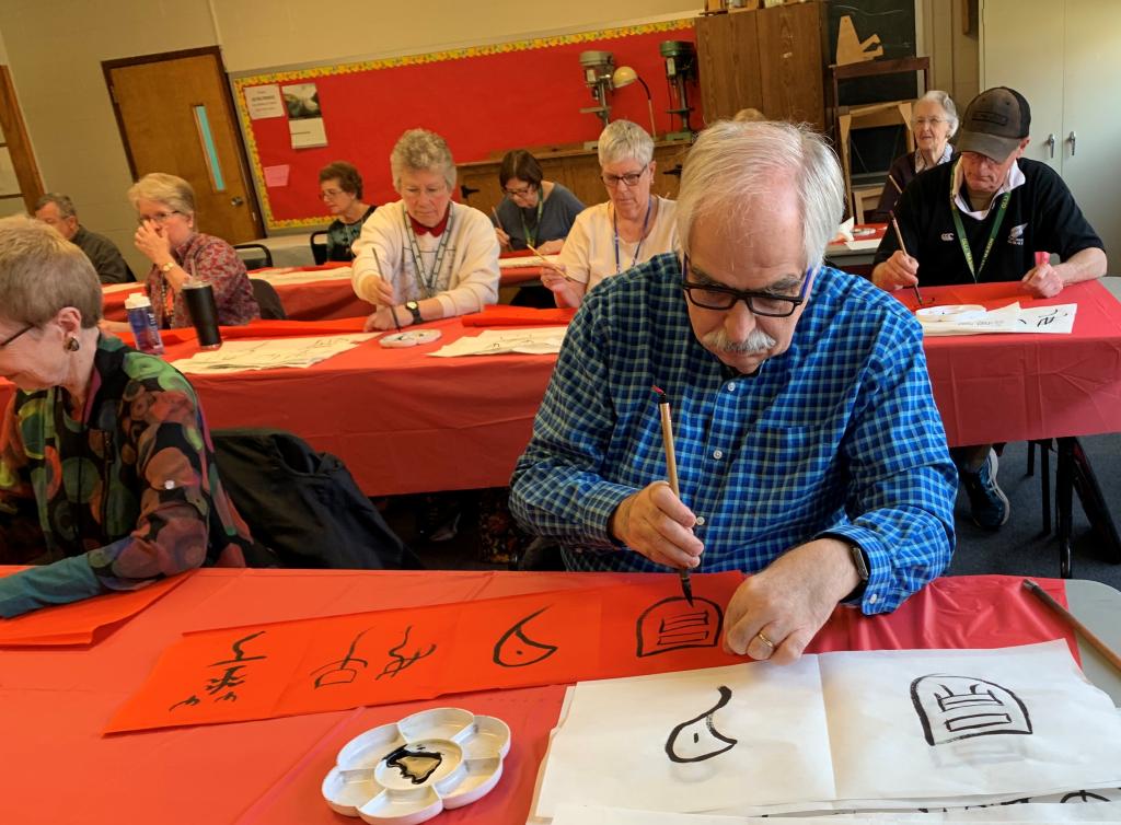当地时间3月27日至4月17日,乔治梅森孔院的老师们受邀前往奥舍尔终身学习学校(Osher Lifelong Learning Institute,简称OLLI),连续四周为OLLI的学员开展了四场讲练结合的中国文化系列讲座。讲座主题分别是书法、国画、剪纸及中国结。