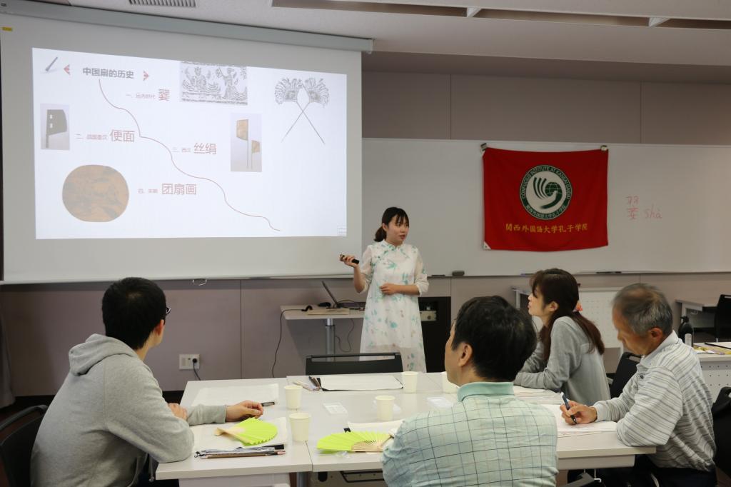6月1日和8日,日本关西外国语大学孔子学院在中宫校区(ICC)举办了两场以“中国扇面画”为主题的文化讲座。讲座分别围绕“团扇画”和“折扇画”两方面,将中国国画与传统扇面艺术完美结合,带领孔子学院学员们从扇面中感受中国传统艺术的魅力。