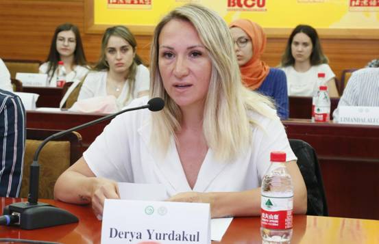 土耳其奥坎大学孔院外方院长Derya Yurdakul在讲话中提到自己2006-2007年在北京语言大学学习汉语的经历。她感谢北京语言大学为土耳其学生打开了认识中国、体验中国文化之门。目前学习汉语已经在土耳其青年学生中刮起了一股热潮,经过此次研修北京语言大学已经在团员们心中留下了十分深刻的印象,她相信大家今后一定会回到北语,重续北语情,继续深造汉语,为中土友好往来添砖加瓦。最后,她向北京语言大学和中国驻伊斯坦布尔总领事馆为本次活动做出的努力表示衷心感谢。