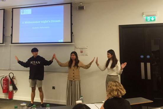 随后,同学们在项目培训导师克尔斯蒂·瑟吉(Kirsty Surgey)的指导下,表演了此次文化研修的成果——莎士比亚经典戏剧《仲夏夜之梦》。