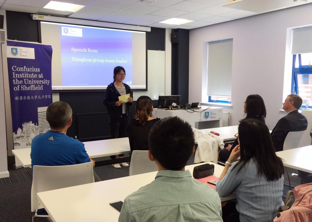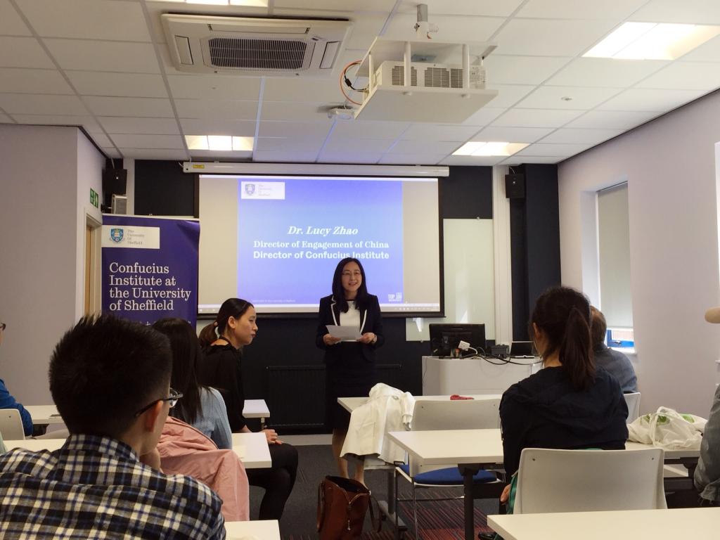 随后,孔院外方院长赵霞博士表示谢菲尔德长久以来就与中国有着密切联系,早在20世纪初就有中国留学生在谢大工程系学习,时至今日,谢大与中国的交流更加密切。她还向大家介绍了课程安排,此次研修除了有相关领域的专家、学者授课外,孔院还与市政厅和当地公司合作,期待为清华学生带来更多具有实用性和创造力的课程体验。