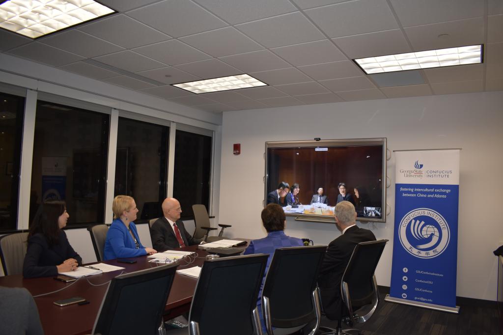 1月13日,北京语言大学与佐治亚州立大学共建孔子学院2019年理事会于佐治亚州立大学世纪大厦(Centennial Hall)会议厅举行。本次理事会采取远程视频的方式进行。
