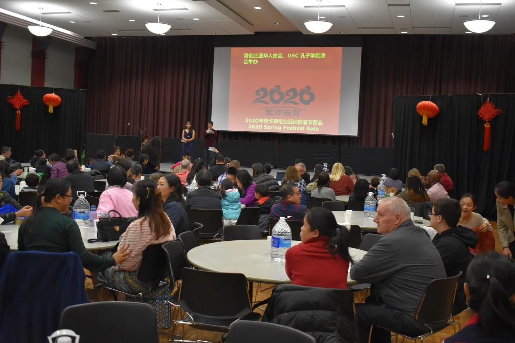 1月18日晚,由美国南卡罗莱纳大学孔子学院和哥伦比亚华人协会共同主办的农历鼠年春节晚会在南卡罗来纳大学的罗素楼宴会厅(Russell House)举行。春晚组委会组织了丰富多彩的文艺节目,吸引了数百名当地华人和爱好中国文化的各界人士参加。孔子学院外方院长叶坦、中方院长李越应邀率孔院本部全体教师及孔子课堂东点学校中方教师出席晚会。