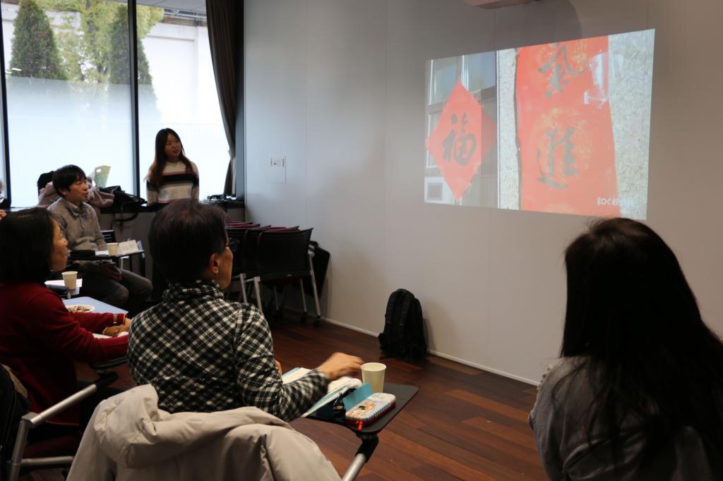 1月25日是会话沙龙的第一天,正值农历正月初一——中国春节。学员们早早来到教室,在“过年好”、“新年快乐”的祝福声中,开始了愉快的交流。为了让学员们也能感受到春节的氛围,孔院老师们除了提前泡好了中国茶之外,还特意准备了瓜子、花生等年货小零食。大家你一言我一语,有说有笑,整个教室都沉浸在一片热闹欢乐的氛围中。本次会话沙龙主要是围绕“春节”和“大年初一”这两大主题展开,大家就中日各自的过年习俗聊了起来。在座有的学员参加过孔院的“春节联欢会”,有的在中国庆祝过春节,大家纷纷根据自己的经历和体验讲述着形形色色的故事,引出了一个又一个的话题。除了春节的话题以外,学员们之间还灵活运用自己掌握的汉语单词语法,分享着汉语学习的心得体会以及汉语学习的小窍门。