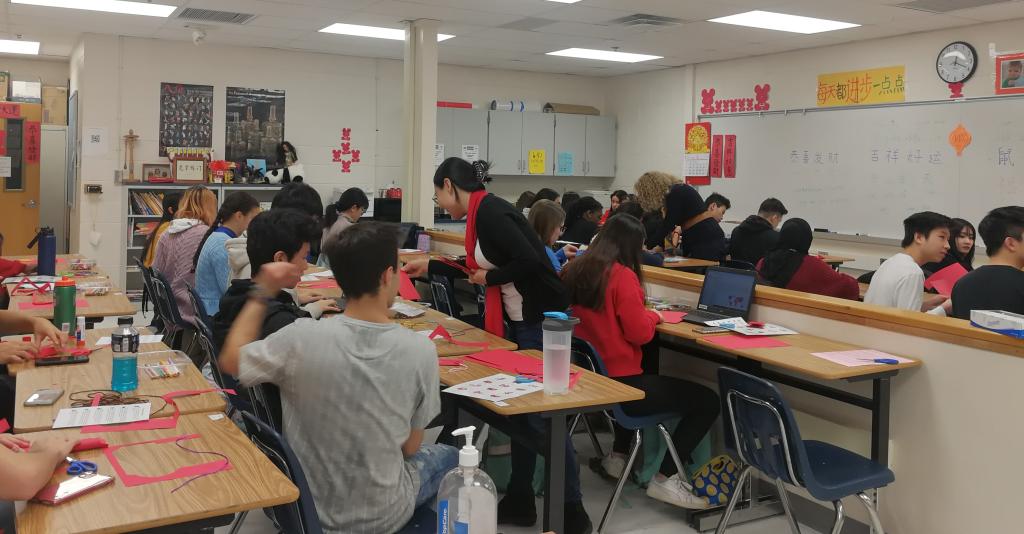 学院的中文老师李老师告诉我们,她的学生都是来自周边高中并选修了汉语课程的在读高中生。既有完全零起点的,也有在初中或者小学学过汉语有一定基础的学生,还有一些华裔学生。一部分学生也选择了AP中文课程并准备参加AP中文考试。大部分学生有比较强的学习动机,他们希望有更多机会用汉语交流,了解中国文化。李老师对梅森孔院为他们带来的此次精彩活动表达了诚挚的感谢。