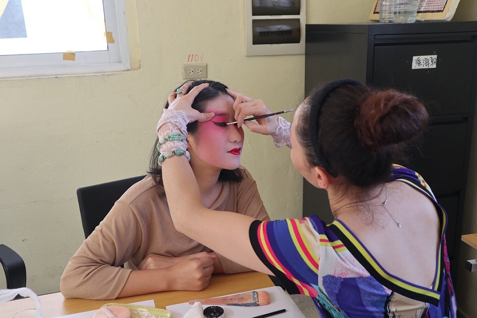 上午,吉林省文化和旅游厅副厅长陈守君率团来到孔子学院,进行表演准备。演员们画脸谱、换服装,举手投足间都是经验的累积沉淀。