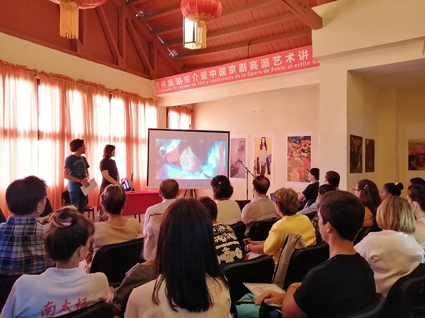 1月13日,吉林旅游推介暨中国京剧高派艺术讲座在古巴哈瓦那大学孔子学院举行。讲座现场,吉林省文化旅游厅和京剧代表团与孔院师生、古巴民众进行密切互动和友好交流。整场讲座气氛热烈,掌声雷动。