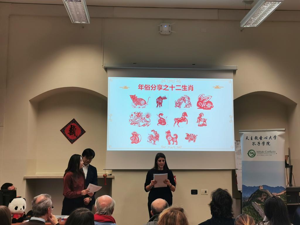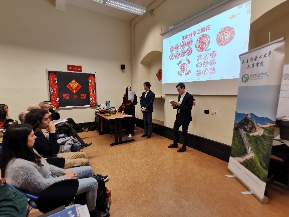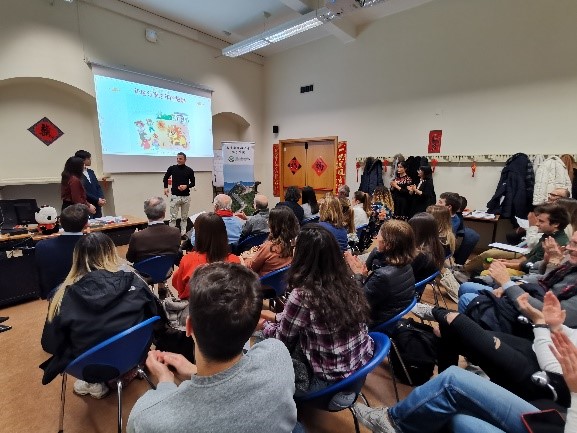 1月22日下午,米兰天主教圣心大学孔子学院在卡尔杜齐(Carducci)校区C015教室举办了新春活动,同在圣心孔院学习汉语的学生一起共庆新春佳节。