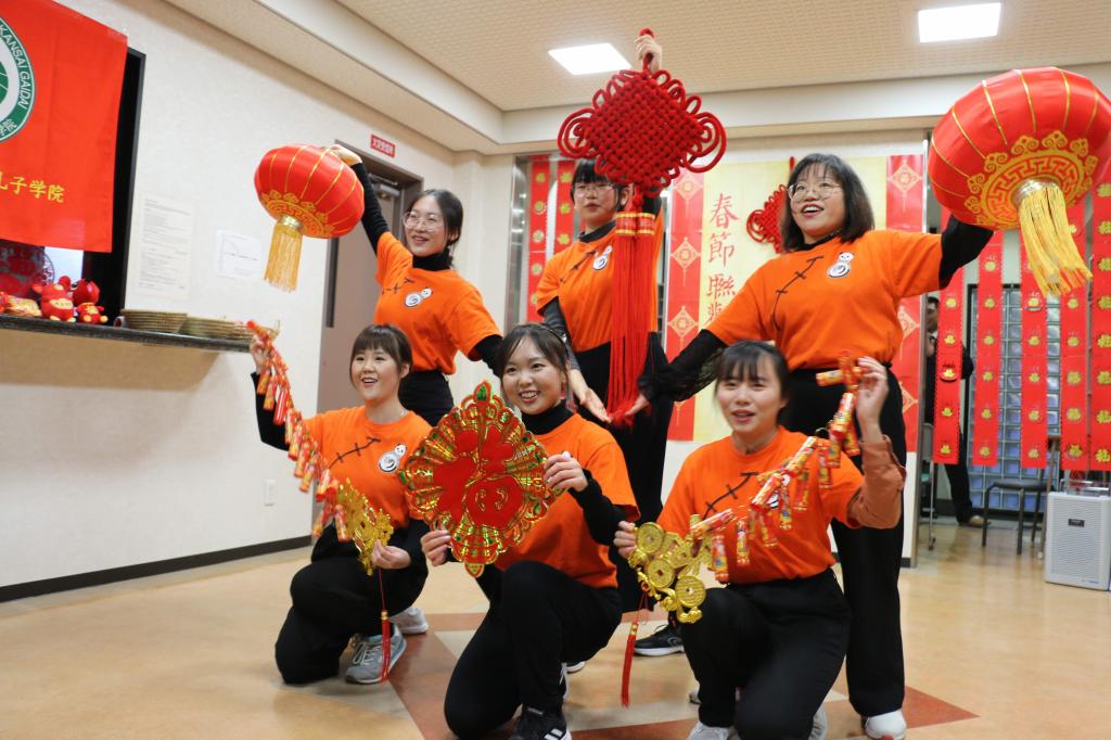 文化体验结束后,春节联欢会正式拉开了帷幕。孔子学院院长靳卫卫教授、枚方市日中友好协会会长山中卓先生先后致辞,为来宾们送上了新春祝福,为孔子学院成立十周年表示了衷心的祝贺,为孔子学院新年的新发展献上了美好祝愿。随后进行了抽奖环节,16位幸运的来宾得到了精美的礼品。联欢会的最后,孔子学院志愿者教师团队为来宾们表演了舞蹈《恭喜发财》,在场的来宾都跟随着欢快的旋律和明快的节奏一起鼓掌打拍子,简单的歌词也引得众人一同合唱,将联欢会推向了高潮。