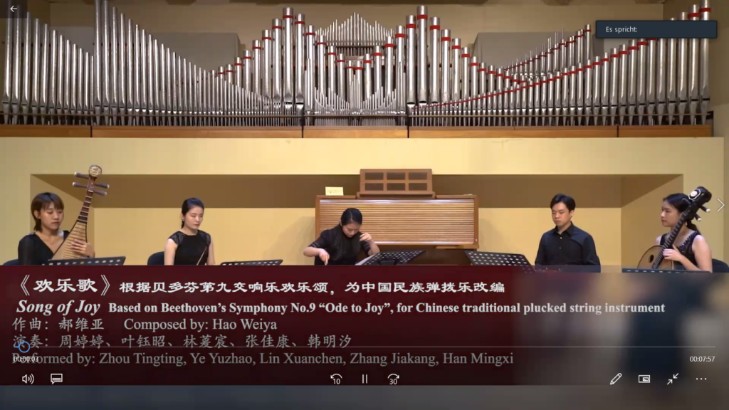 2021年2月14日,正值中国农历新年大年初二,波恩孔子学院和慕尼黑大学孔子学院联合举办了一场精彩纷呈的线上交响音乐会。波恩孔子学院德方执行院长杨梅妍博士(Dr. Katja Yang)和慕尼黑孔子学院德方院长高芳芳女士分别发表了中国农历牛年的新年致辞。两位院长热情洋溢的新年寄语之后,呈现在大家面前的是由中国中央音乐学院的音乐家们带来的一场音乐盛宴。除了演奏中国传统曲目之外,音乐家们还运用中国传统乐器演奏了波恩之子——贝多芬的名曲《欢乐颂》。疫情无情人有情,这场线上音乐会让观众体验了中国民族音乐的无穷韵味,感受了中国传统文化的博大精深,也为人们献上了美好的新春祝福。
