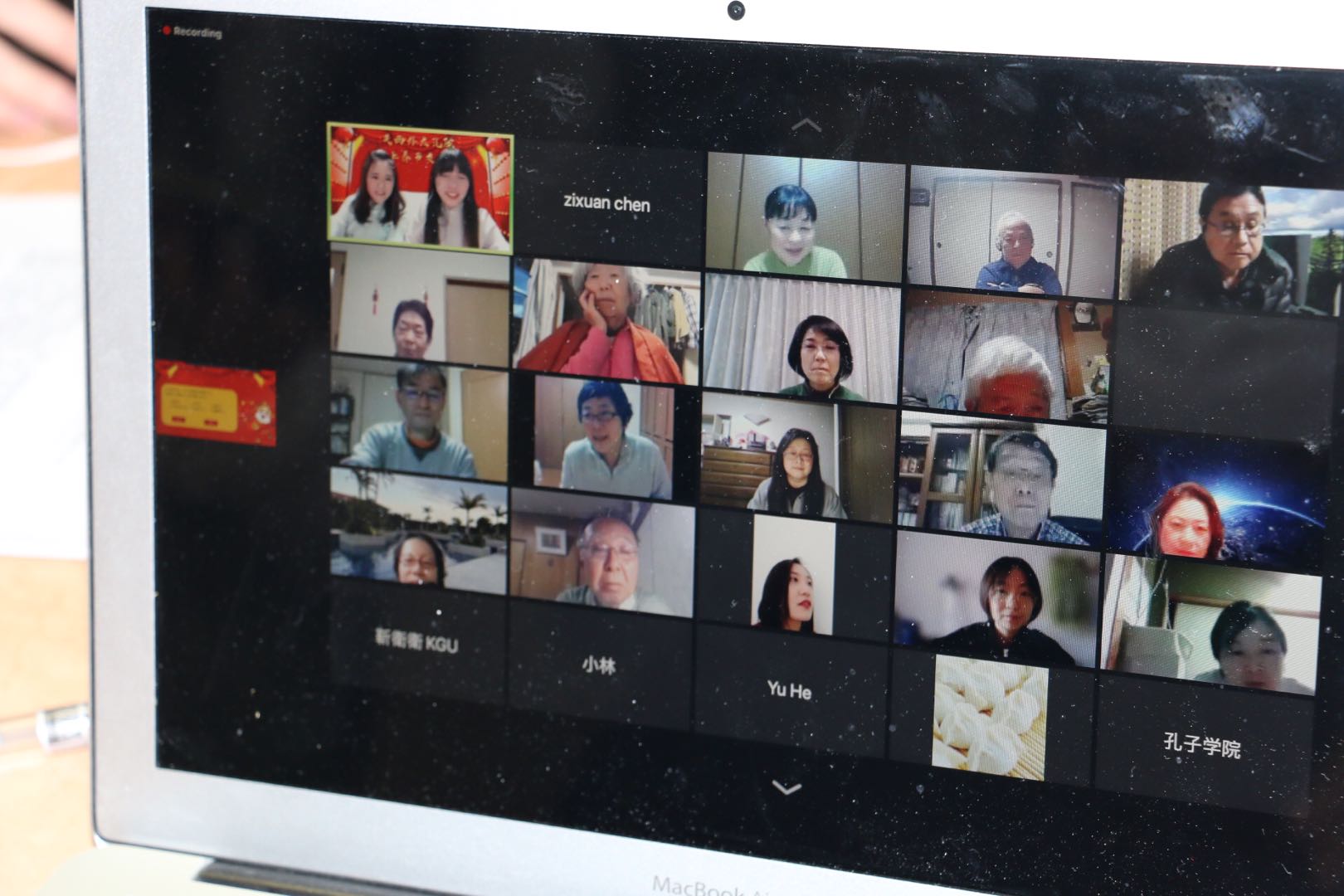 孔院团队精心制作的“孔子学院2020年工作回顾”视频为本次活动进行了预热,大家感恩这一年的相互陪伴,携手共进。随后,一段征集自孔院团队、学员及枚方市日中友协的春节祝福视频,表达了大家对新年的美好祝愿。