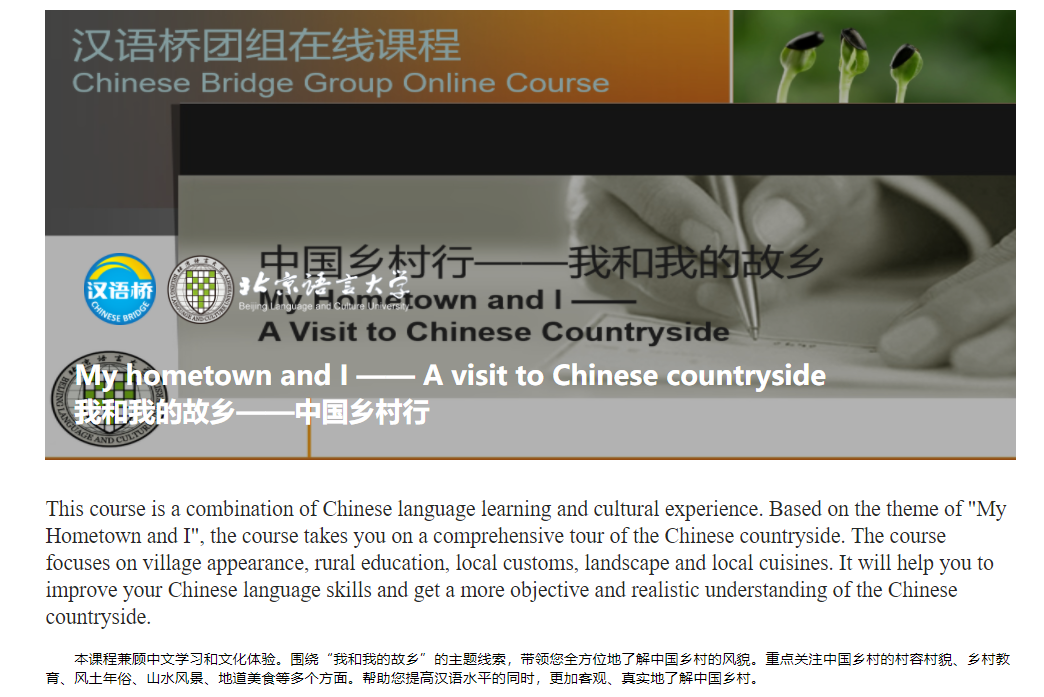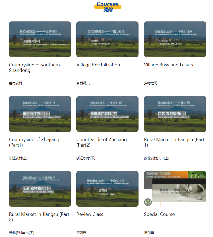 目前,“我和我的故乡——中国乡村行”线上团组的录播课程已全部在汉语桥平台上线。未来一周,学员们将采取录播和直播相结合的方式,兼顾语言学习和文化体验,全方位地了解中国乡村的教育、风俗、美食、风景等方面,在提高汉语的同时,客观、真实地了解中国乡村。