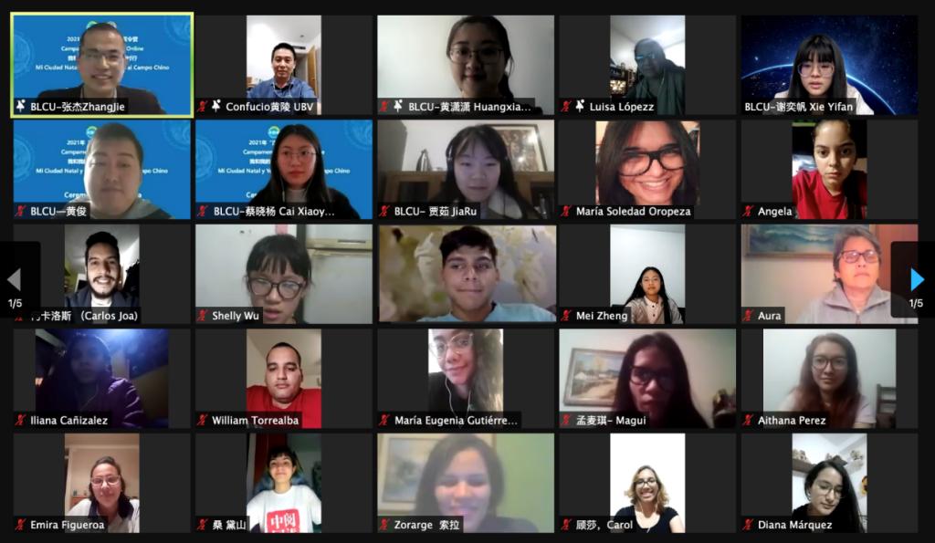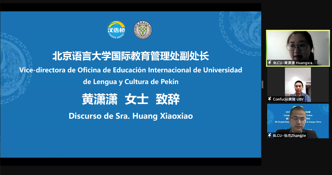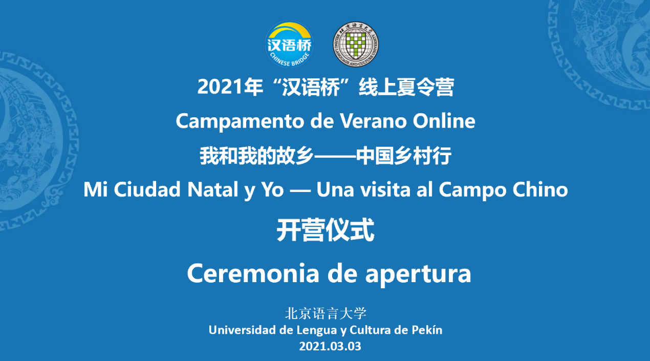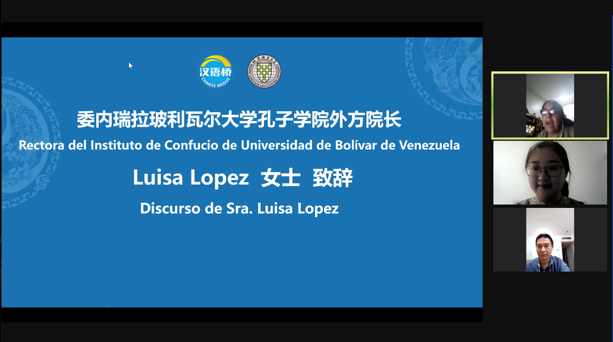 3月3日上午,由教育部中外语言交流合作中心主办、北京语言大学承办的“汉语桥”线上夏令营——“我和我的故乡——中国乡村行”举行开营仪式。委内瑞拉玻利瓦尔大学孔子学院外方院长Luisa Lopez女士,委内瑞拉玻利瓦尔大学孔子学院中方院长黄陵先生,北京语言大学国际教育管理处副处长黄潇潇女士,以及本次夏令营的全体教师和来自委内瑞拉玻利瓦尔大学孔子学院的110多名学员共同在线参加了本次开营仪式。