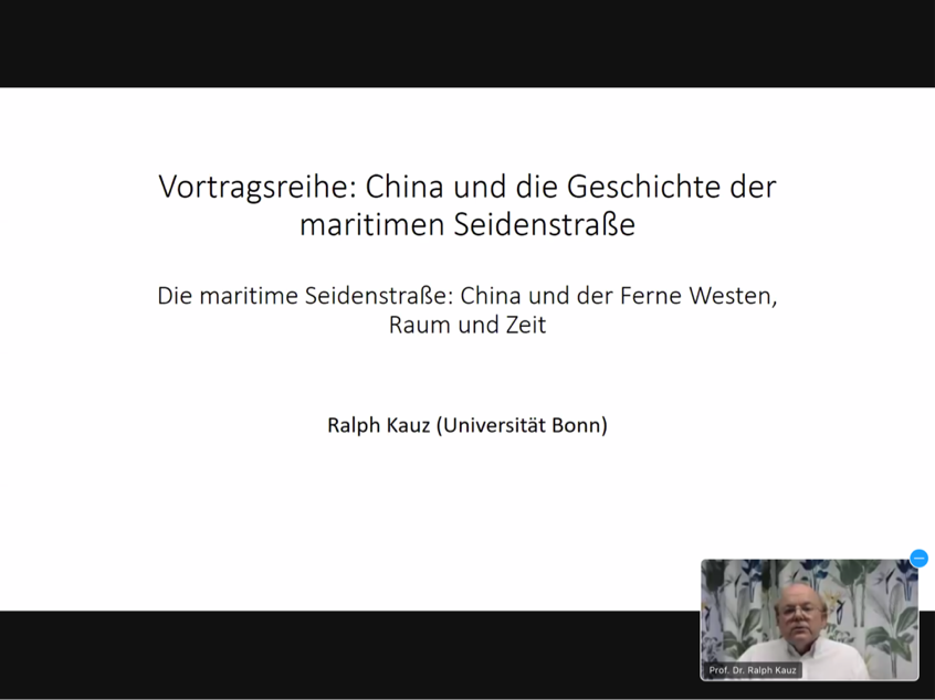 当地时间3月1日18点,由波恩孔子学院与纽伦堡—埃尔兰根孔子学院联合举办的“中国与海上丝绸之路的历史”主题系列网络研讨会准时拉开帷幕。波恩大学汉学系教授廉亚明(Prof. Dr. Ralph Kauz)以“海上丝绸之路 ——时空视角下的中国与远西”为主题开启了本次系列研讨会的首个讲座。由波恩孔子学院德方院长杨梅妍博士(Dr. Katja Yang)和纽伦堡—埃尔兰根孔子学院德方院长徐燕博士(Dr. Yan Xu-Lackner)共同担任本次讲座的主持人。