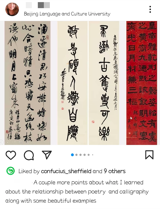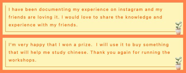 其中,一共五位选手获奖(由北语老师评比,由谢大孔院奖励):诗词兰亭书法奖- 陶婷老师;最佳参与奖青少年部的一航同学;最佳参与奖成人部的Theresa学员;最佳诗词朗诵奖禹墨同学;最佳诗词吟唱奖翰凌同学。谢大孔院青少年部—星星中文学校的校长胡新群博士说:“特别感谢每一位老师的精心指导,感谢每一个家庭的坚守支持,中国古典诗歌已经在谢大孔院青少年部扎根发芽。看到孩子们在短短两天内提交了如此多的作品,我们由衷地感到自豪。通过本次诗歌秀-朗读者活动,学校将坚定信念,把古诗词和经典文学继续融入到中国语言和文化的教学中。”本次活动获得了参与学员的广泛好评。