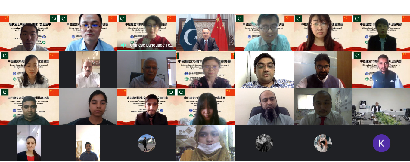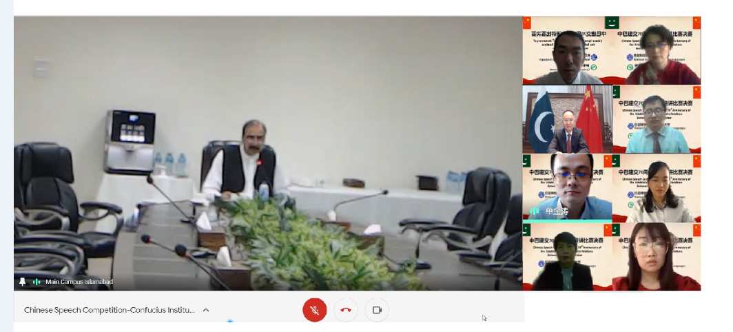 5月18日,为庆祝中巴建交70周年,巴基斯坦伊斯兰堡孔子学院举行了以“中巴友谊”为主题的线上演讲大赛。中国驻巴基斯坦大使农融、文化参赞张和清、巴基斯坦国立现代语言大学校长贾法尔少将和来自国立科技大学、南方信息与科技大学、撒戈达大学等学校的嘉宾与孔子学院师生共同观看了当天的决赛。国立现代语言大学校长贾法尔少将在致辞中回顾了中国和巴基斯坦源远流长的友好情谊,还引用了一句中国的谚语“兄弟齐心,其利断金”来形容中巴两国牢不可破的友谊。他在致辞中高度评价了孔子学院在中巴教育与文化交流中发挥的重要作用。他说国立现代语言大学和中国相关机构一直有着良好的合作,相信在两国优秀青年的共同努力下,中巴关系会迎来更加繁荣美好的明天。