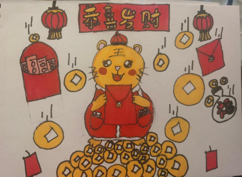 书法是中国独特的一种艺术形式,展现了汉字之美,手工更是孩子们的喜好。陶曼婷老师则负责这两类课堂活动,她带领学生们积极动手做手工并体验书法之美,让孩子们从“一角”来尝试体验中国文化的既含蓄又奔放美感。在介绍书法时,陶老师也会告诉孩子们练习书法是中国人对生活方式和生命价值的一种认可,比如:“上善若水” 表示最高的美德是像水一样宽容,“天道酬勤”则是一种告诫:只要坚持努力,必有成果回报。手工作业正好呼应了虎年主题,陶老师给孩子们详细介绍了老虎头上的汉字“王”字的含义,老虎的精神就是不畏惧、有力量、有勇气。孩子们受到了鼓舞的同时也觉得非常有趣,跃跃欲试还想在自己的额头上画个“王”字扮小老虎,场面十分热闹。