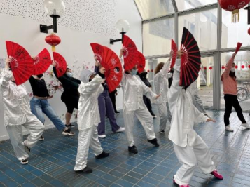 16日全天活动在孔院分校区举行,孔院特别邀请热爱太极文化的Jean Claude先生与多年习练太极扇的王艳霞老师教大家打太极拳,舞太极扇。很多学生是第一次体验这种太极运动,感觉异常新奇,他们身着太极服,认真地跟着老师练习一招一式,一吐一息,并表示希望孔院以后能举办这样的太极培训班。