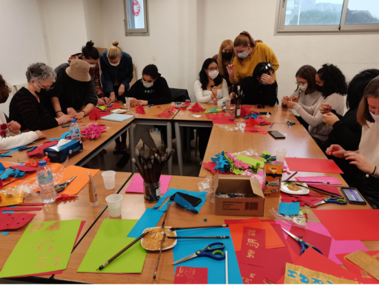 太极文化体验刚结束,孔院又迎来了体验中国传统手工制作的学生和市民。中国的剪纸艺术一直倍受法国人喜爱,妙手生“春”,喜气迎“福”,大家用红纸剪下一个个“春”,一个个“福”,寓意着新春到,福气至。剪纸活动持续了三个多小时,最后大家互赠“作品”,互道新春祝福。
