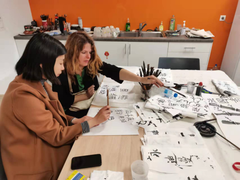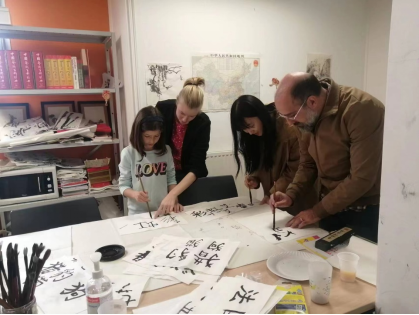 国际中文日是世界各国朋友了解中文和中华文化的窗口。在法国西海岸的一座小城,在国际中文日这一天,大家不仅接触了书法艺术,还了解了棋牌游戏的玩法。一位带着女儿一起来的先生当即表示,希望自己的女儿能尽快到孔子学院学习汉语和书法。